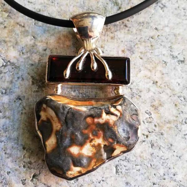 Boulderopal mit Obsidian Anhänger in 925 Silber