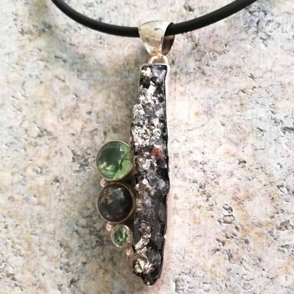 Pyrit Schiefer Anhänger mit Obsidian in 925 Silber
