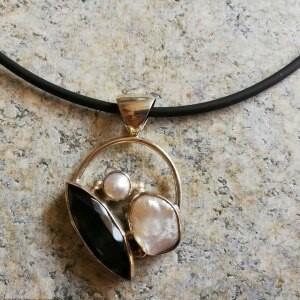 Obsidian Anhänger mit Zuchtperle in 925 Silber