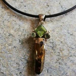 Bedampfter Rauchquarz Anhänger mit Obsidian in 925 Silber
