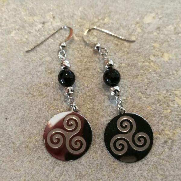 Onyx mit Triskele Spirale Ohrringe 925 Silber