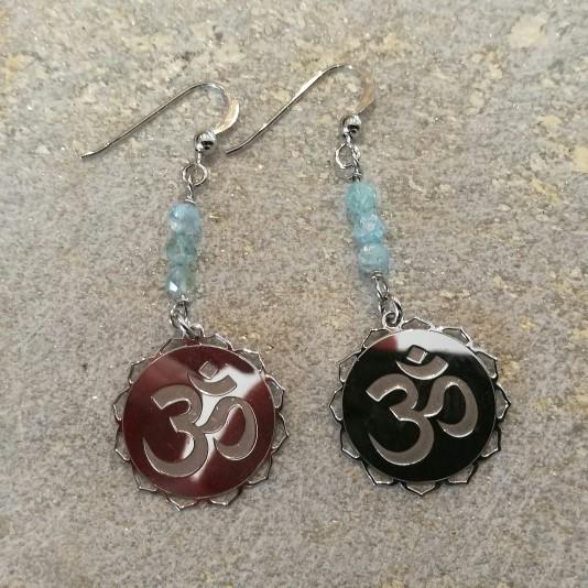 Aquamarin mit Om Zeichen Ohrringe 925 Silber