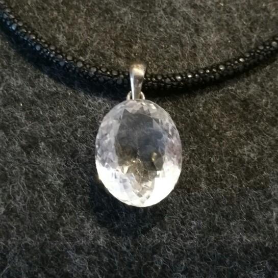 Bergkristall Anhänger facettiert Gr. M in 925 Silber in Krappenfassung