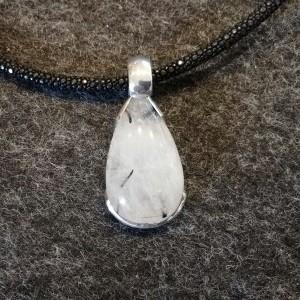Turmalin Quarz Bergkristall Anhänger Tropfen in 925 Silber eingefasst